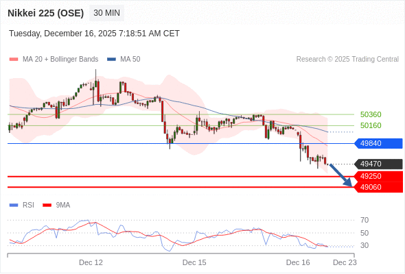 在 49840 之下,看跌,目标价位为 49250 ,然后为 49060 。