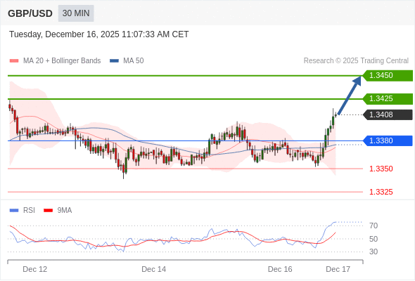 在 1.3380 之上,看涨,目标价位为 1.3425 ,然后为 1.3450 。