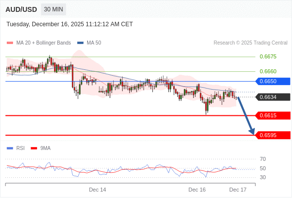 在 0.6650 之下,看跌,目标价位为 0.6615 ,然后为 0.6595 。
