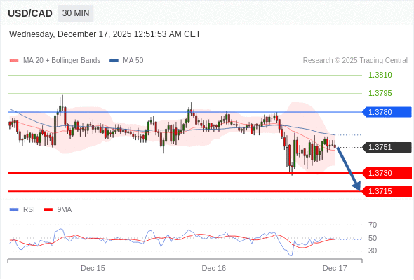 在 1.3780 之下,看跌,目标价位为 1.3730 ,然后为 1.3715 。