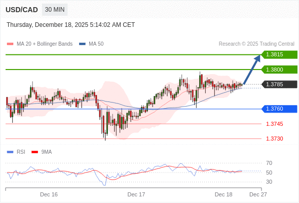 在 1.3760 之上,看涨,目标价位为 1.3800 ,然后为 1.3815 。