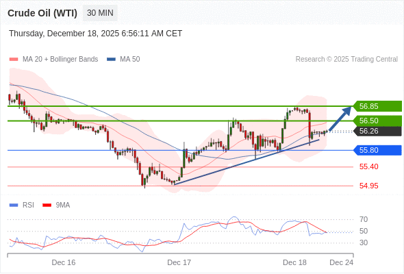 在 55.80 之上,看涨,目标价位为 56.50 ,然后为 56.85 。