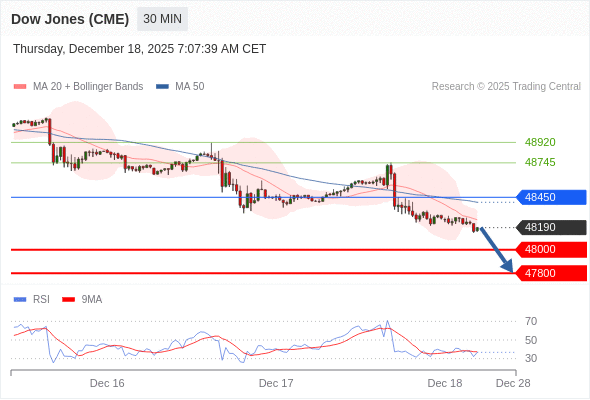 交易策略: 在 48450 之下,看跌,目标价位为 48000 ,然后为 47800 。