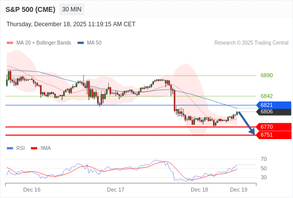 美国标普500指数期货 (H6) 当日内: 短期关键阻力位在6821。