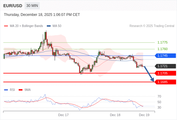 在 1.1745 之下,看跌,目标价位为 1.1705 ,然后为 1.1685 。