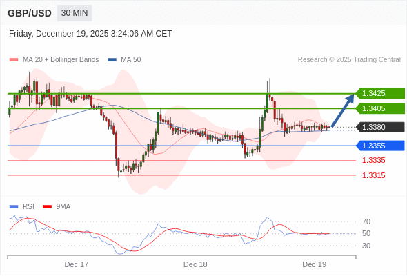 在 1.3355 之上,看涨,目标价位为 1.3405 ,然后为 1.3425 。