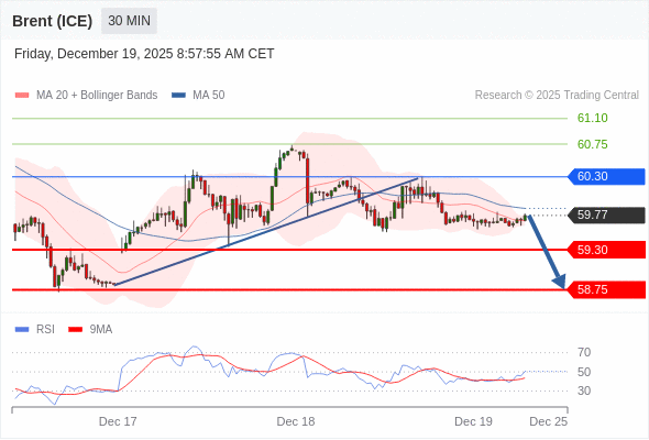 在 60.30 之下,看跌,目标价位为 59.30 ,然后为 58.75 。