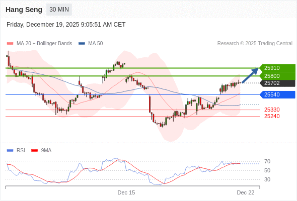 在 25540 之上,看涨,目标价位为 25800 ,然后为 25910 。