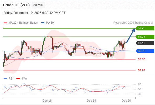 在 56.00 之上,看涨,目标价位为 56.75 ,然后为 57.20 。