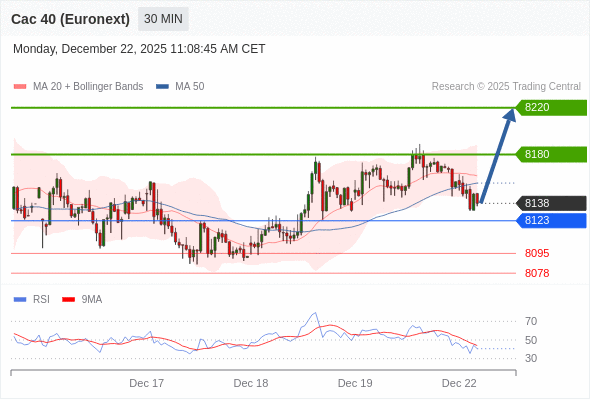 法国CAC指数期货 (Euronext) (F6) 当日内: 超短线(当日内)支撑位在8123附近。