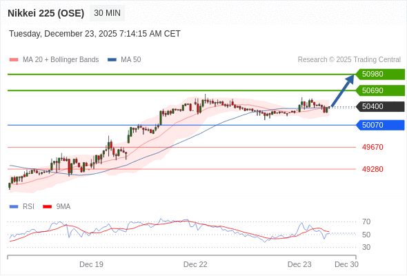 在 50070 之上,看涨,目标价位为 50690 ,然后为 50980 。