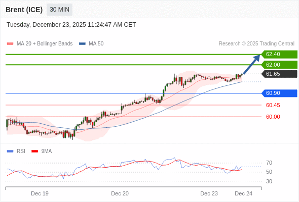 在 60.90 之上,看涨,目标价位为 62.00 ,然后为 62.40 。