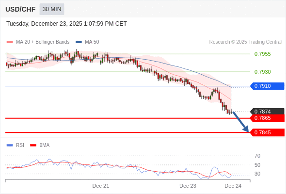 在 0.7910 之下,看跌,目标价位为 0.7865 ,然后为 0.7845 。