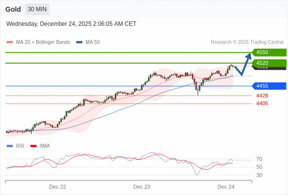 在 4455 之上,看涨,目标价位为 4520 ,然后为 4550 。
