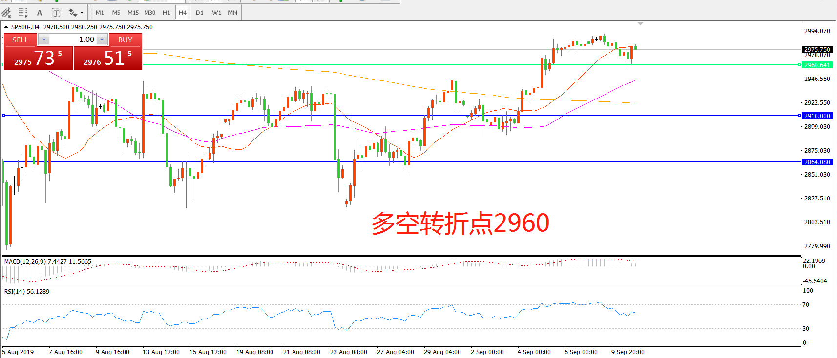 周二美国三大股指小幅低开后窄幅震荡,标普500回踩2960支撑后小幅反弹,整体走势依然平稳。苹果公司召开产品发布会,推出Apple Arcade游戏订阅和Apple TV+视频服务,并发布新款Apple Watch Series 5,第七代iPad和iPhone 11系列手机等产品,但整体表现平平无奇。