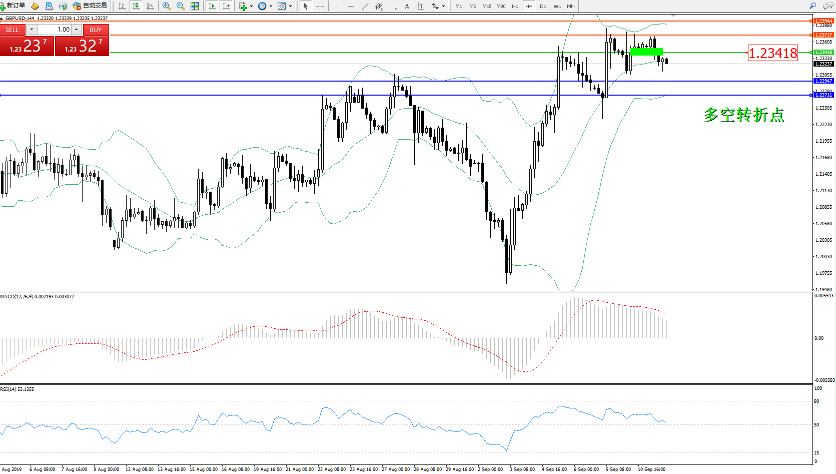 交易策略:1.23418下方看跌,目标1.22947、1.22711