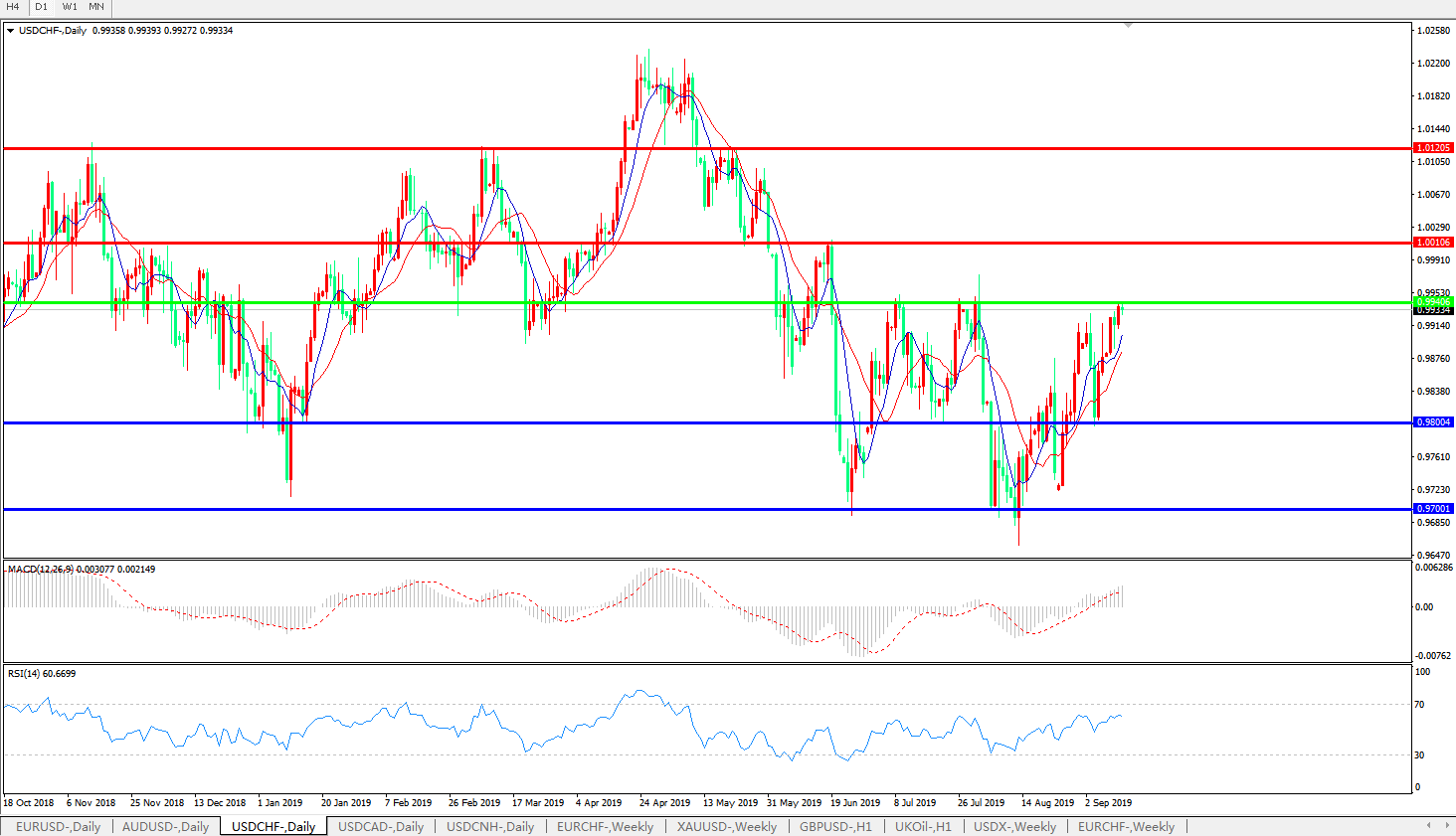 美元瑞郎USDCHF   日线图: