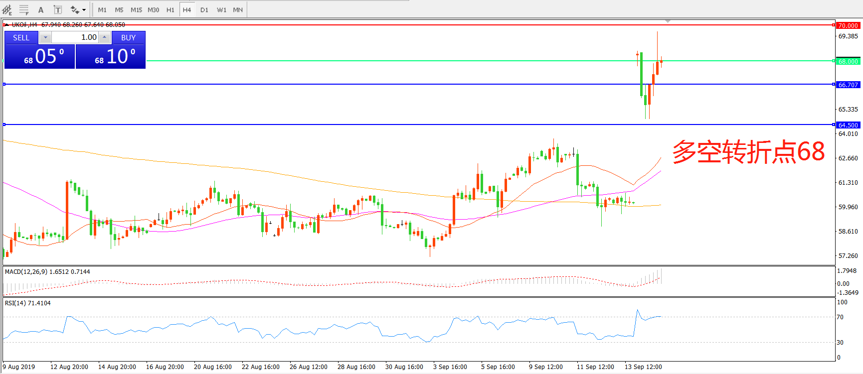多空转折点:68.00