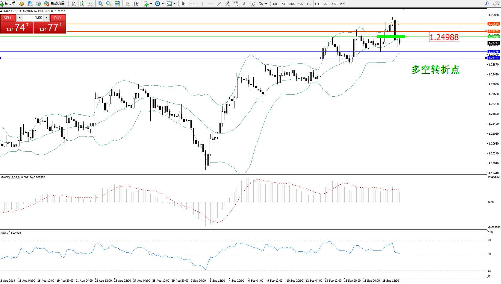 交易策略:1.24988下方看跌,目标1.24378、1.24121