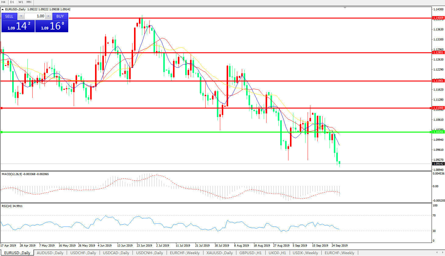 欧元兑美元在周四进入欧洲时段后重新走低,并最终击穿了前期1.0926的双重底部支撑,创出自20175月以来的28个月新低,原因在于投资者对欧元区经济前景继续看衰; 此前,欧洲央行德国籍鹰派执委劳滕施莱格意外宣布辞职,这给此后新行长拉加德上任后欧银进一步强化宽松更加铺平了道路,此消息直接推动欧元汇价进一步跳跌。而自本周以来,欧元区最大经济体德国经济失速,很可能在年内即陷入技术性衰退的前景,也已经成了欧元多头的一块心病; 日内,当年主导创建欧元区的功臣之一——法国前总统希拉克去世,消息也对欧元区投资者情绪产生了一些牵连,而眼下,欧元汇价下方所面临的的重要支撑,恰恰就已经是20174月法国大选初步结果揭晓时的向上跳空缺口,一旦汇价回补此缺口,将可能在年内下行至1.05一线
