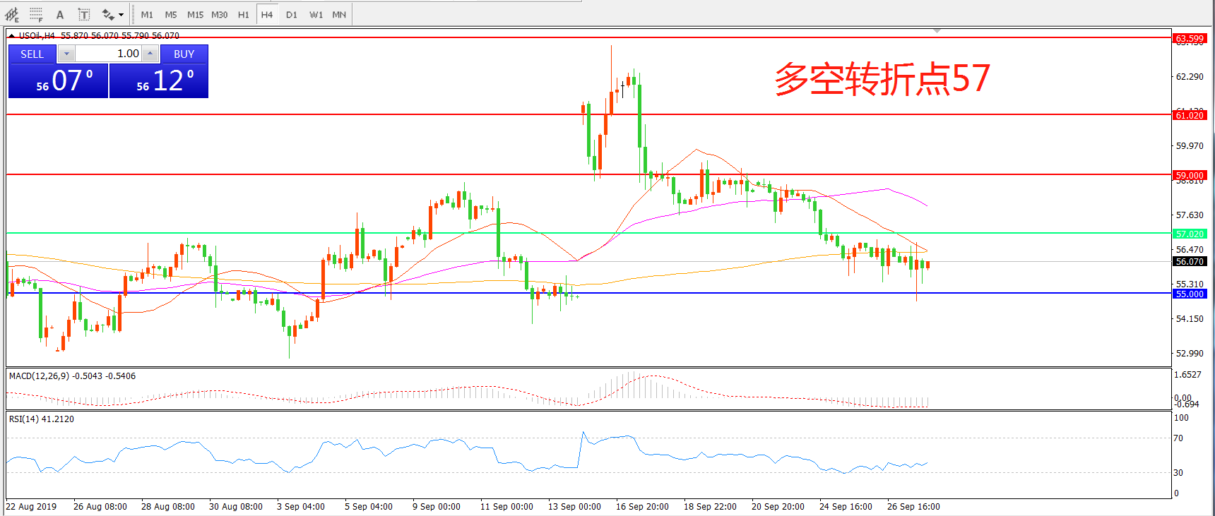 交易策略: 在57.00之下看跌,目标55.00   52.50