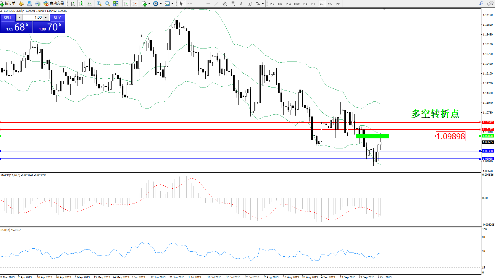 交易策略:1.09898下方看跌,目标1.09368、1.09098