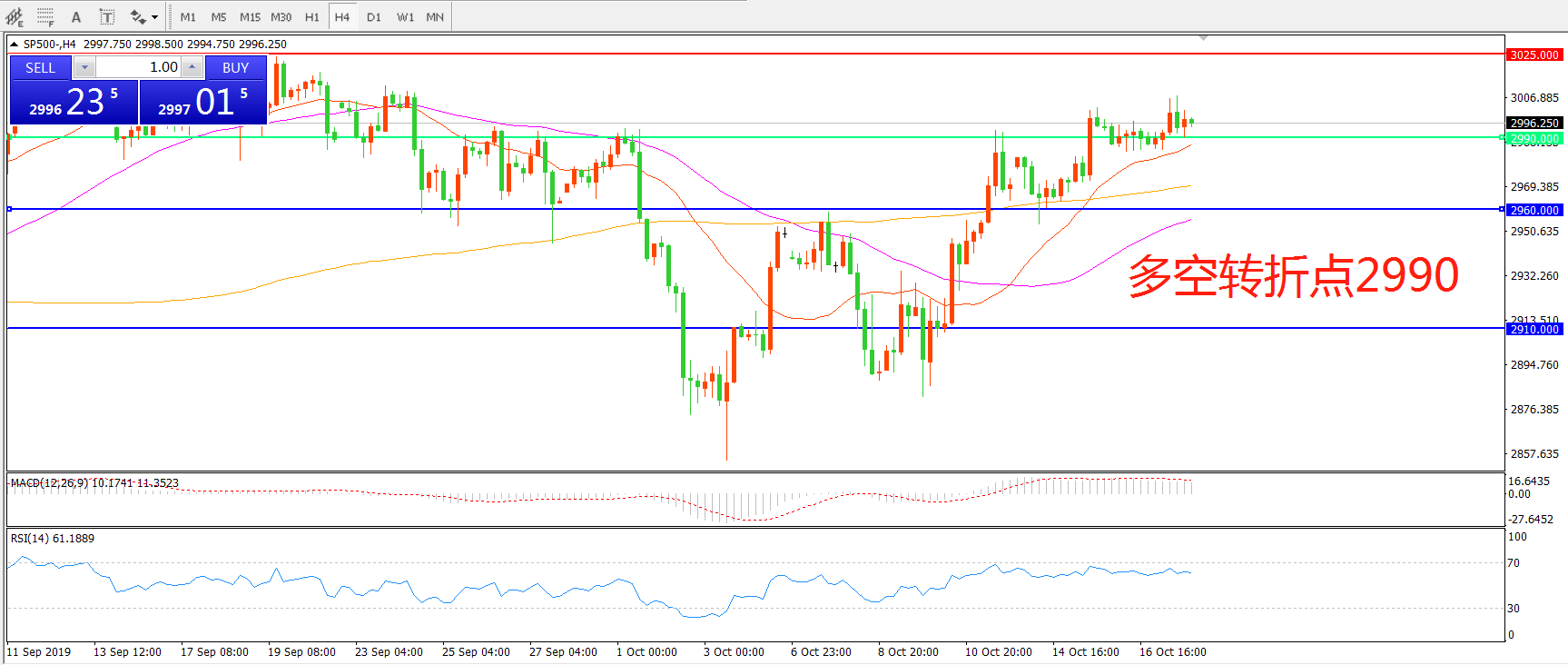 多空转折点:2990.00