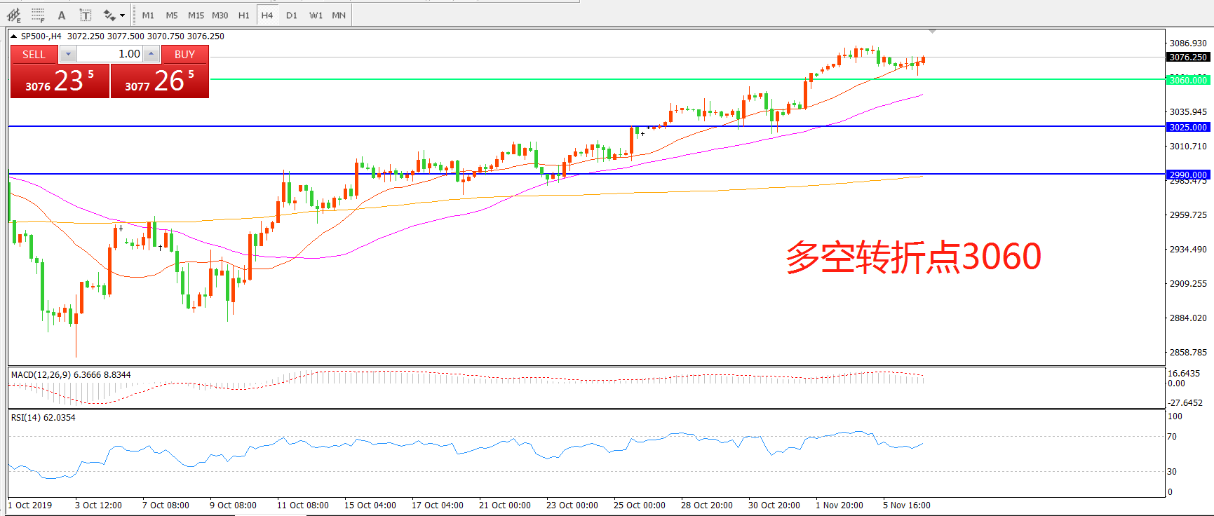 多空转折点:3060.00