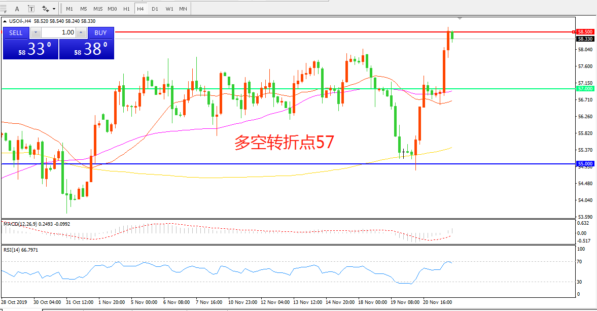 交易策略:在57.00 之上看涨,目标58.50 60.50