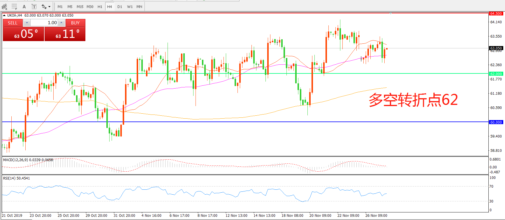 多空转折点:62.00