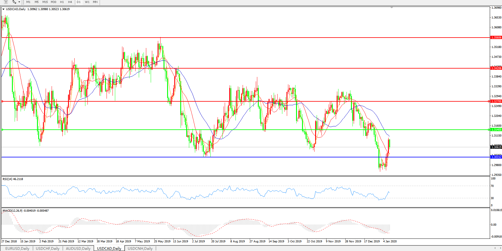 技术面简析:日线图短期均线开始快速走强,汇价反弹较为迅速且涨幅可观,MACD开始走平且量能收缩,RSI震荡走升,预计汇价短期大概率将延续反弹,重点关注1.3140附近压制是否持续有效,中期下行趋势不改。