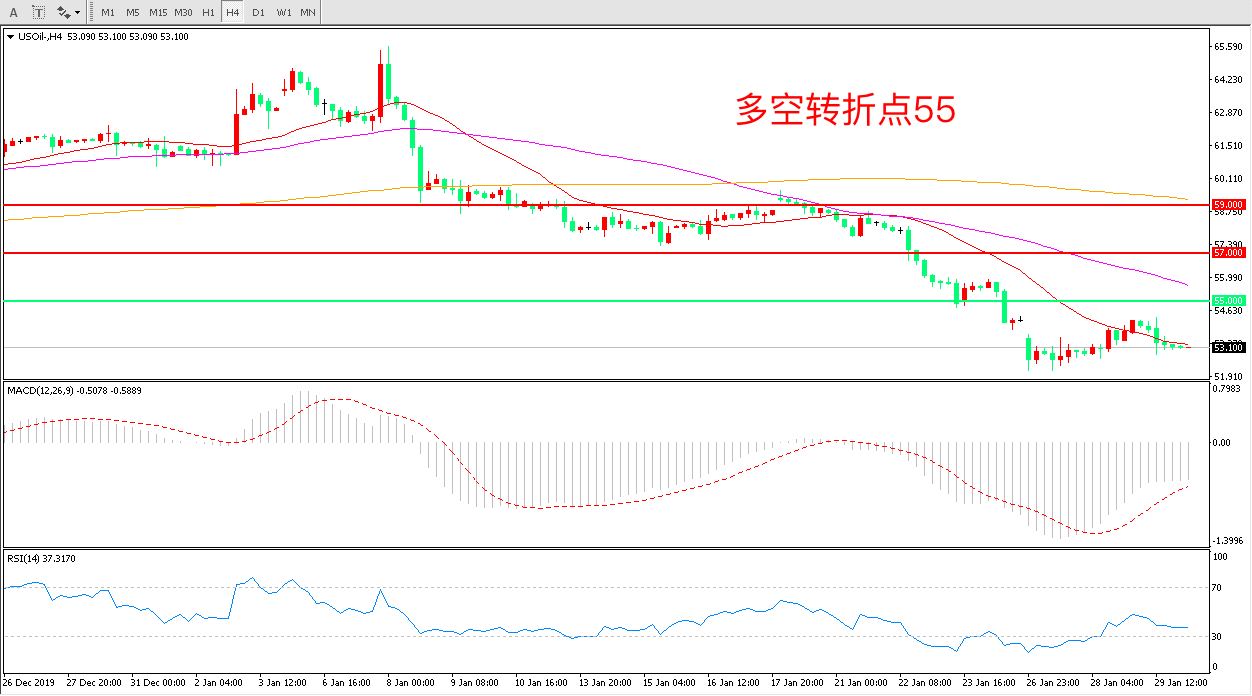 周三(1月29日) ,美国能源信息署公布数据显示,美国EIA原油库存增加354.8万桶,超过市场预期,利空油价,美国WTI原油价格短线下挫,收报53.41美元/桶。此后,美联储利率决议一如市场预期,维持利率在1.5%-1.75%不变,会后声明与上月大体相同,从措辞的变化来看,美联储认为居民支出的增长略微有所放缓,这令美元略微受到一些拖累。另一方面,疫情依然成为市场的主导因素,在中国采取防控措施的情况下,原油需求不可避免的会受到影响,短期利空效应仍然存在。