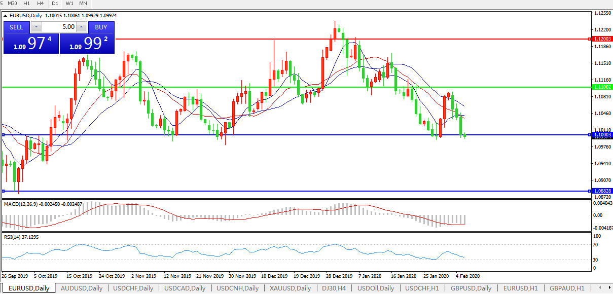 交易策略:1.1100下方看跌,目标1.1000、1.0880