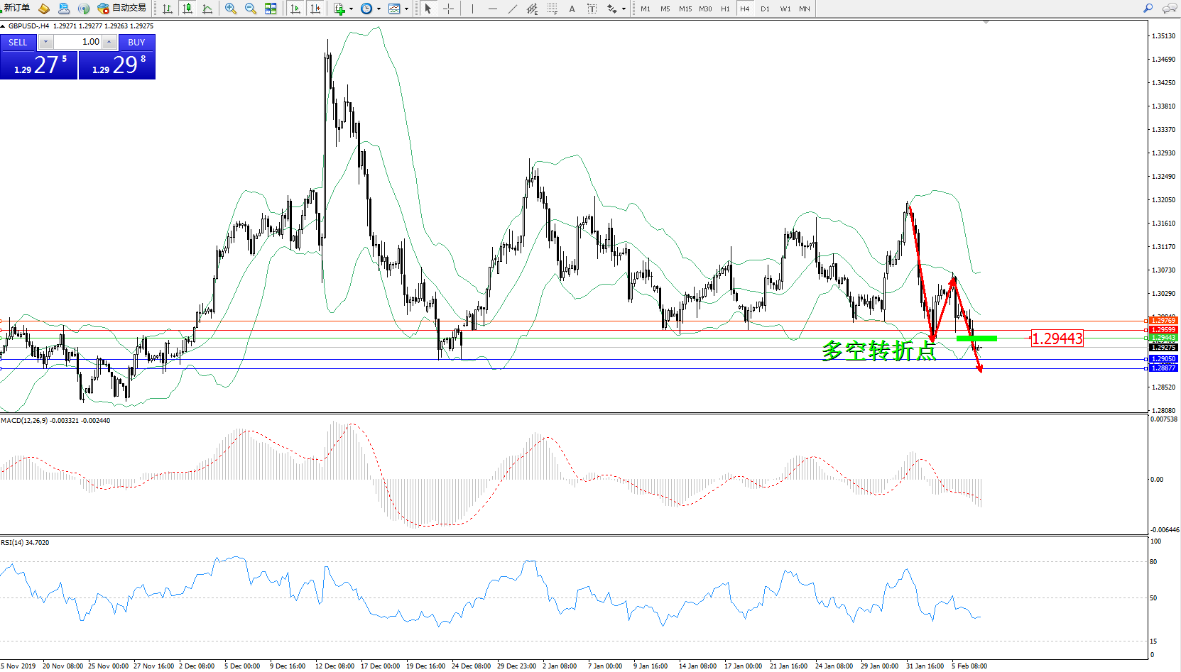 交易策略:1.29443下方看跌,目标1.290501.28877