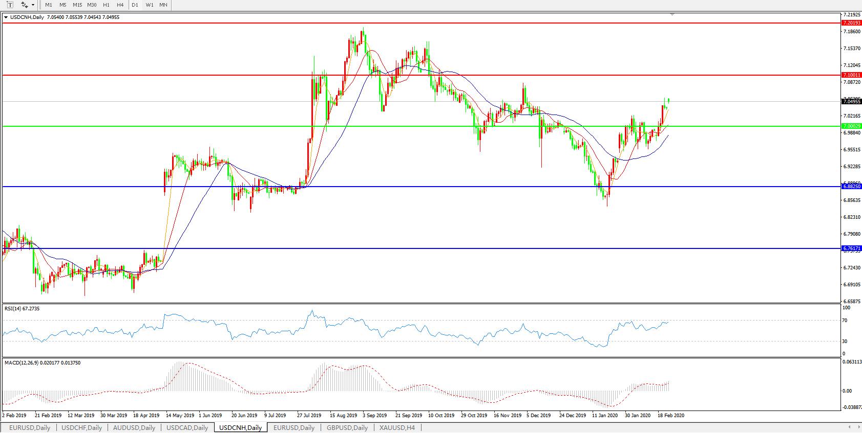 交易策略: 在7.0000之上,看涨,目标价位为7.1000,然后为7.2000。