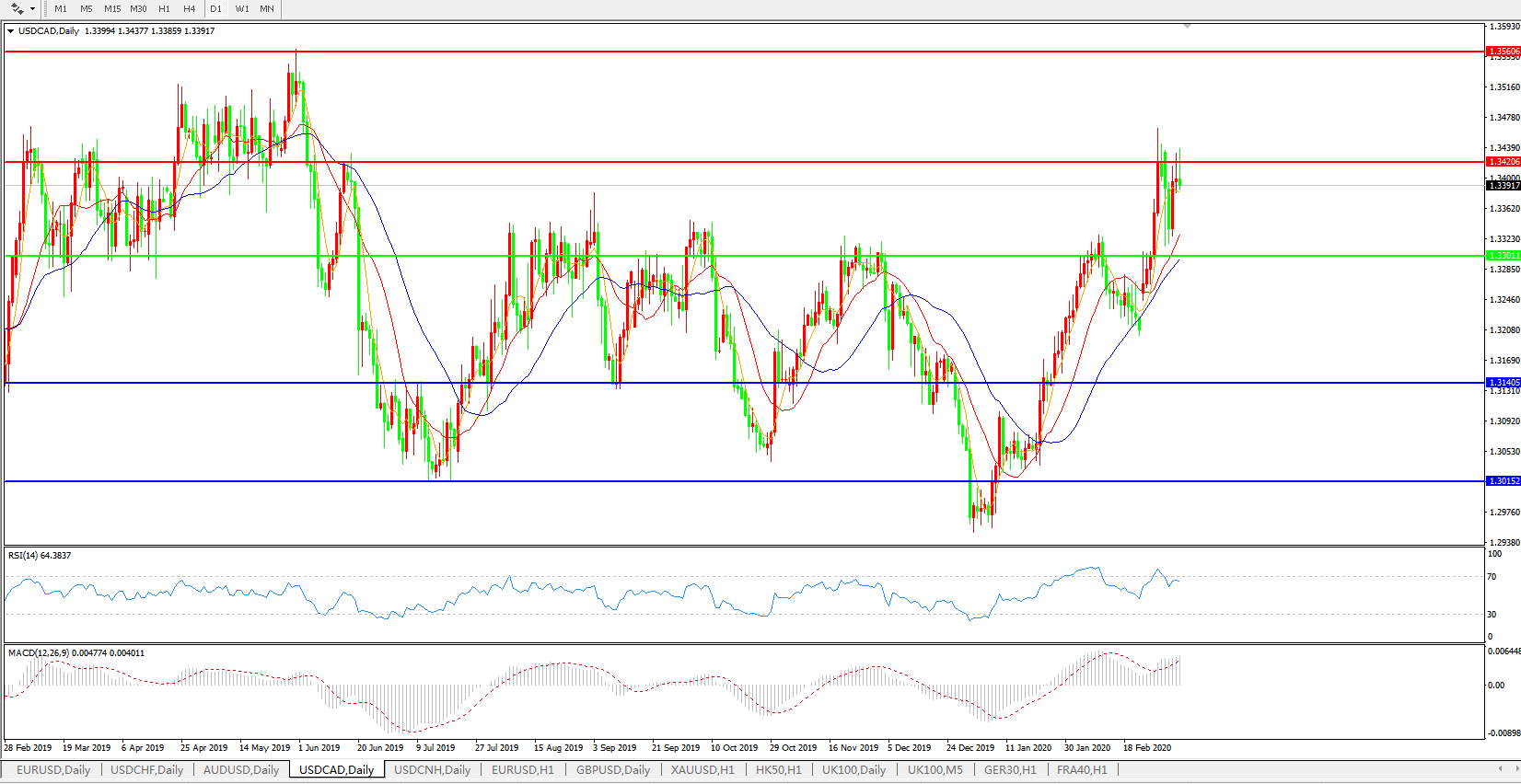 美元兑加元USDCAD 日线图: