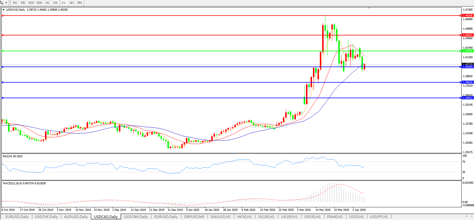 美元兑加元USDCAD 日线图: