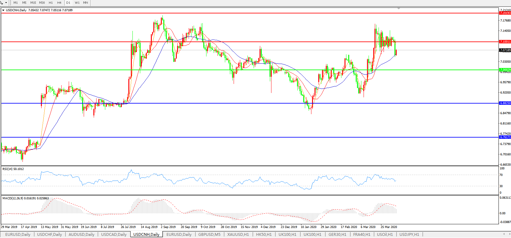 美元兑人民币USDCNH 日线图: