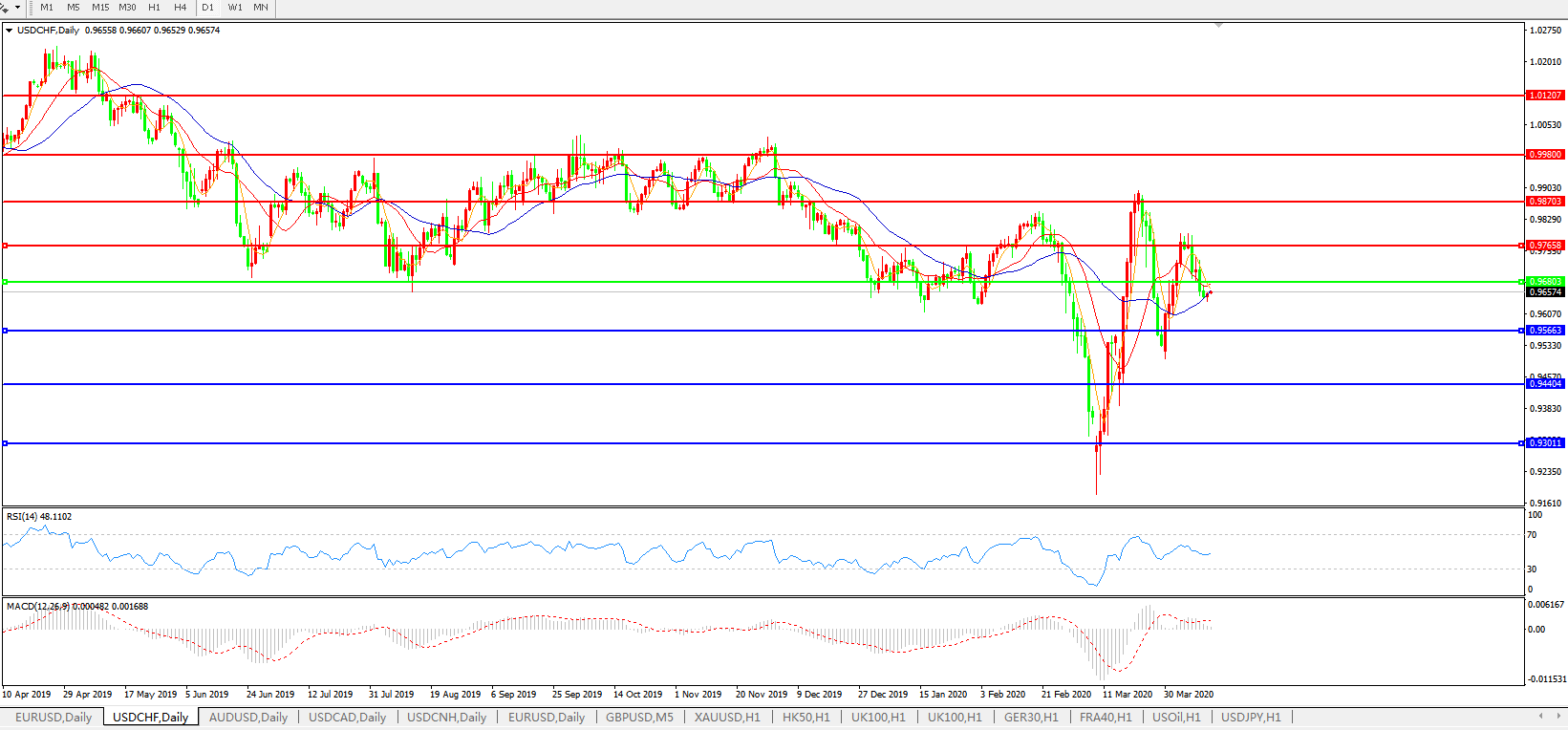 交易策略:0.9680下方看跌,目标0.9565、0.9440