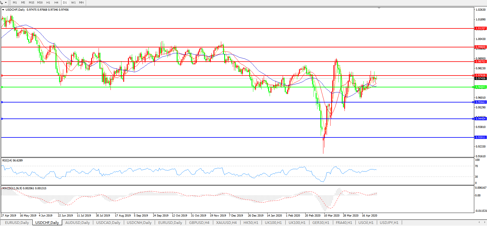 交易策略:0.9680上方看涨,目标0.9765、0.9870