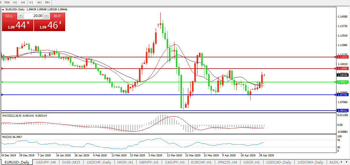 交易策略:1.0880上方看涨,目标1.1000、1.1100