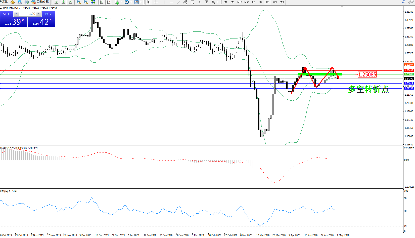 交易策略:1.25085下方看跌,目标1.23614、1.22797