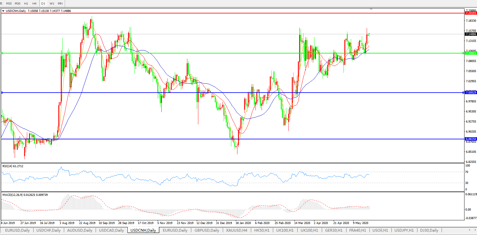 美元兑人民币USDCNH 日线图: