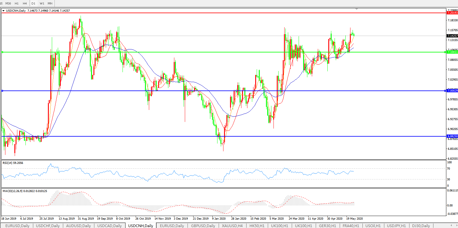 交易策略: 在7.1000之上,看涨,目标价位为7.2000,然后为7.3000。