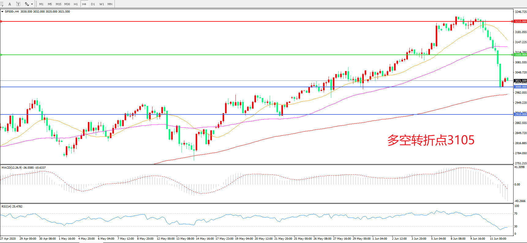 交易策略:在3105.00之下看跌,目标3000.00 2910.00