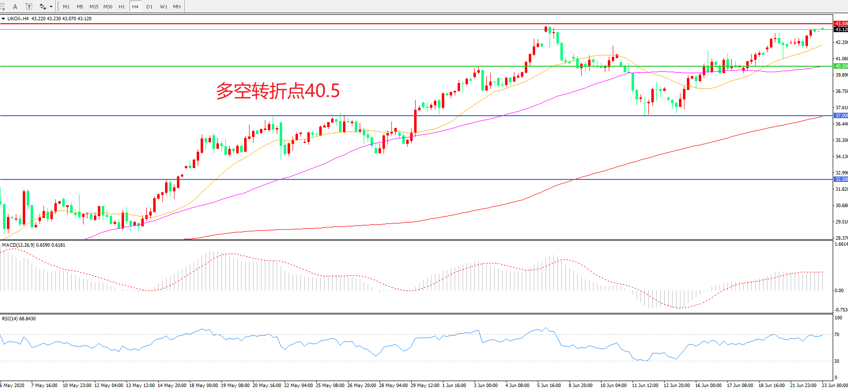 周一(6月22日),受益主要产油国供应趋紧和尼日利亚执行减产, 布伦特原油延续上行走势,收报43美元/桶。从当前的情况看,油价已经进入了复苏的中期阶段,维持窄幅波动概率较大,目前需求方面仍然到疫情的影响,进一步上行的动力稍显不足。