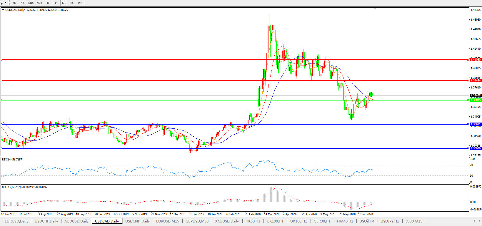 交易策略:在1.3600之上,看涨,目标价位为1.3845、1.4100