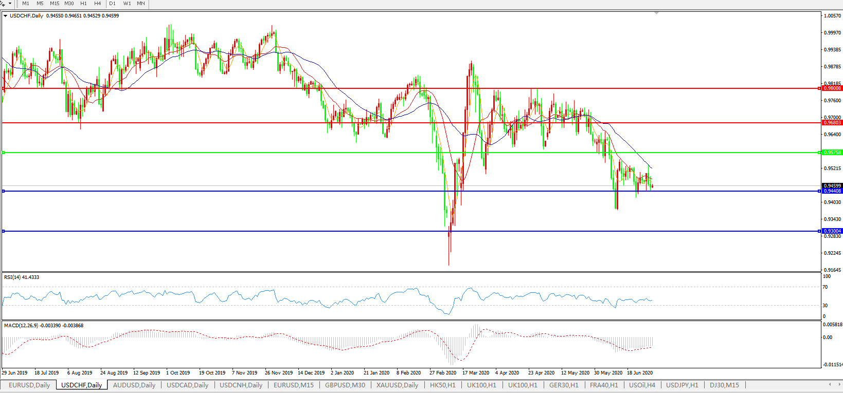 交易策略:0.9575下方看跌,目标0.9440、0.9300