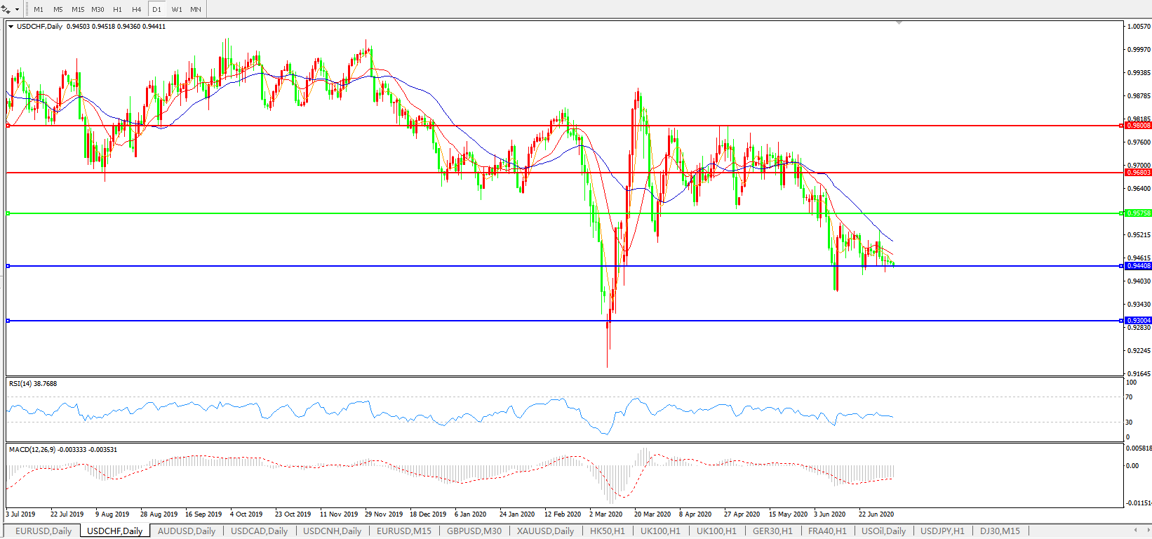 交易策略:0.9575下方看跌,目标0.9440、0.9300