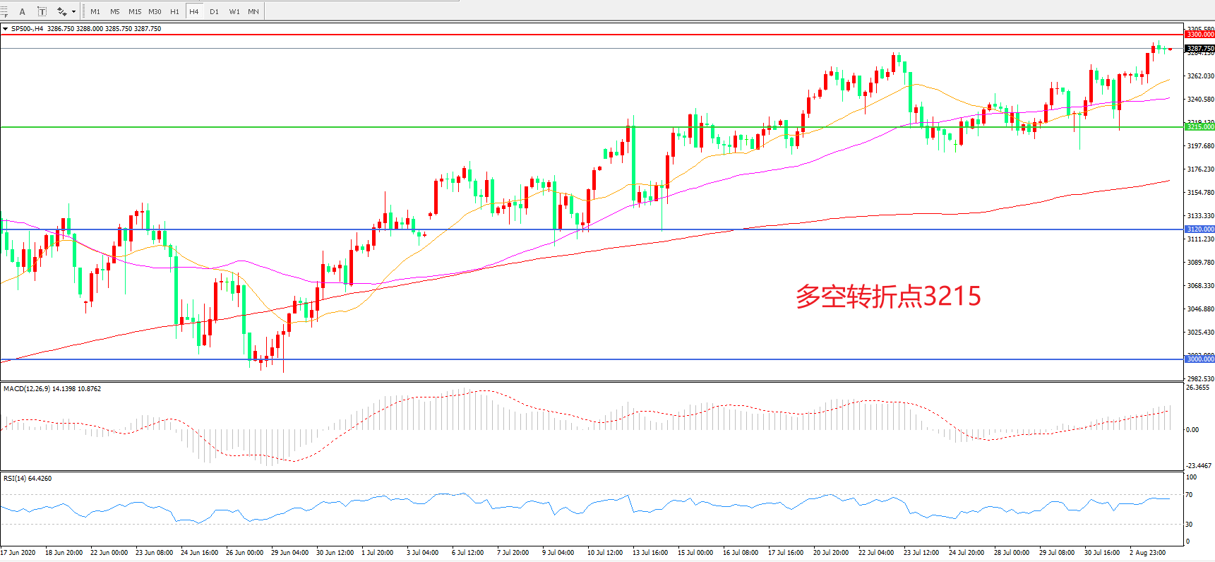 周一(8月3日),疫苗研发传来利好,科技股延续强势标普,标普500震荡上行,收报3286.50点。大型科技股强势依旧,微软、苹果股价纷纷刷新历史新高。目前,市场最关心的仍是美国的新一轮财政刺激方案,两党围绕下一份经济纾困法案的两党磋商已经持续了逾一周的时间,但整体上仍处于僵持状态。